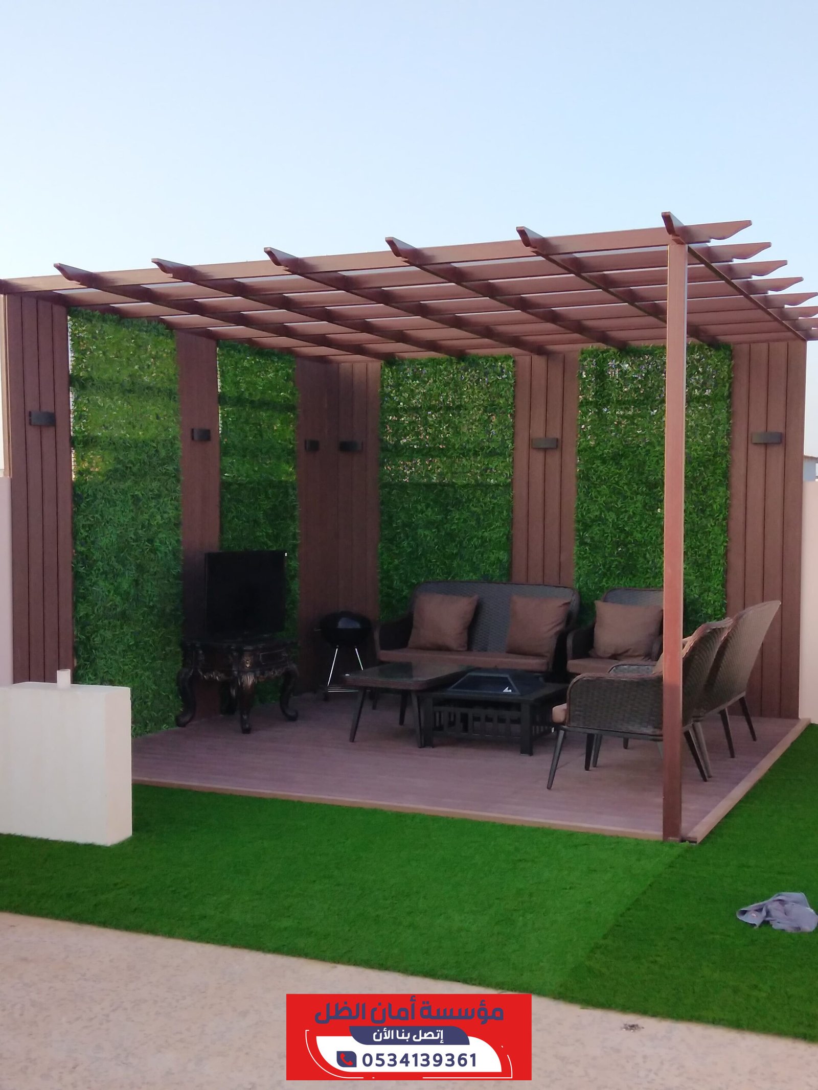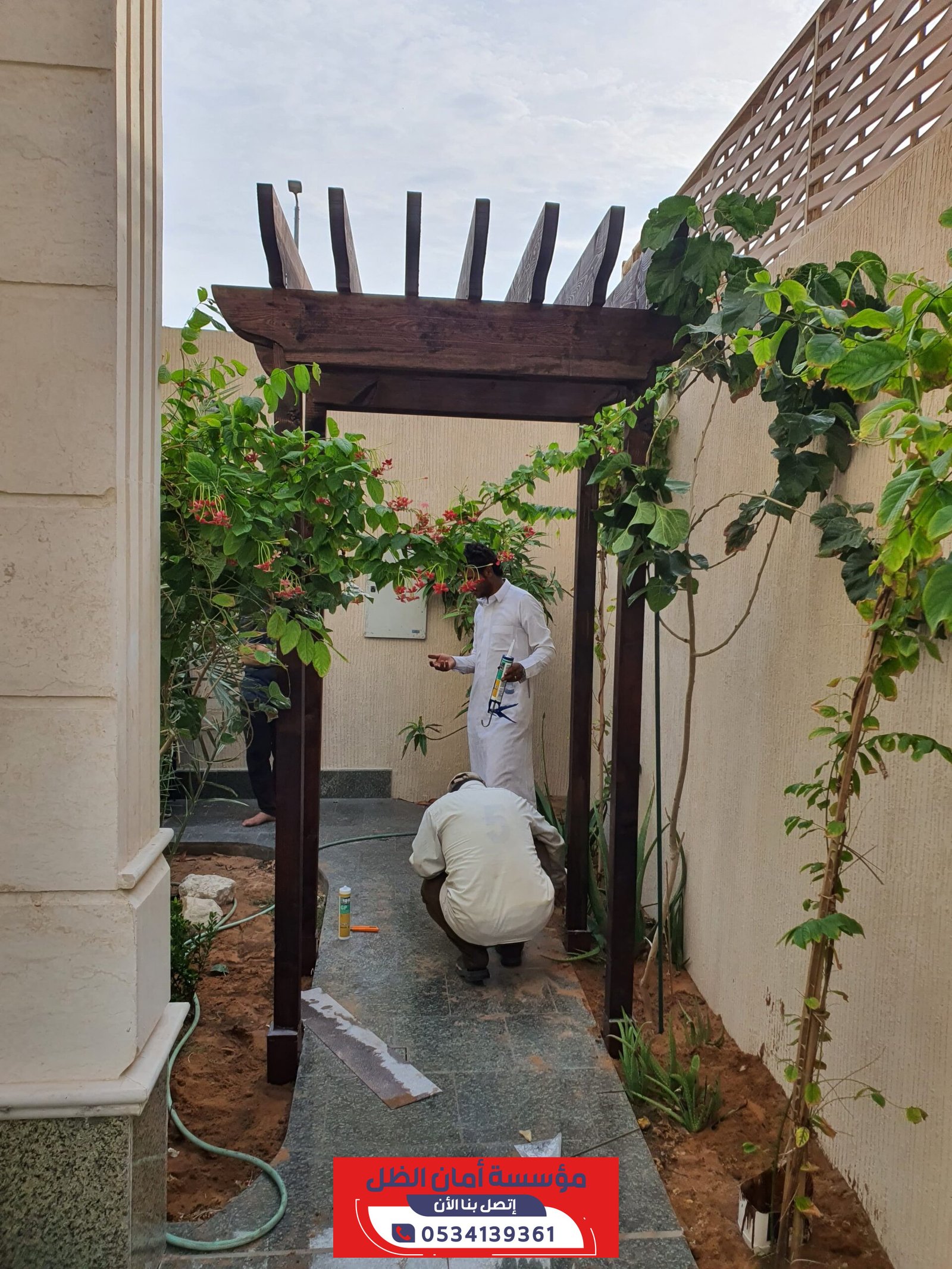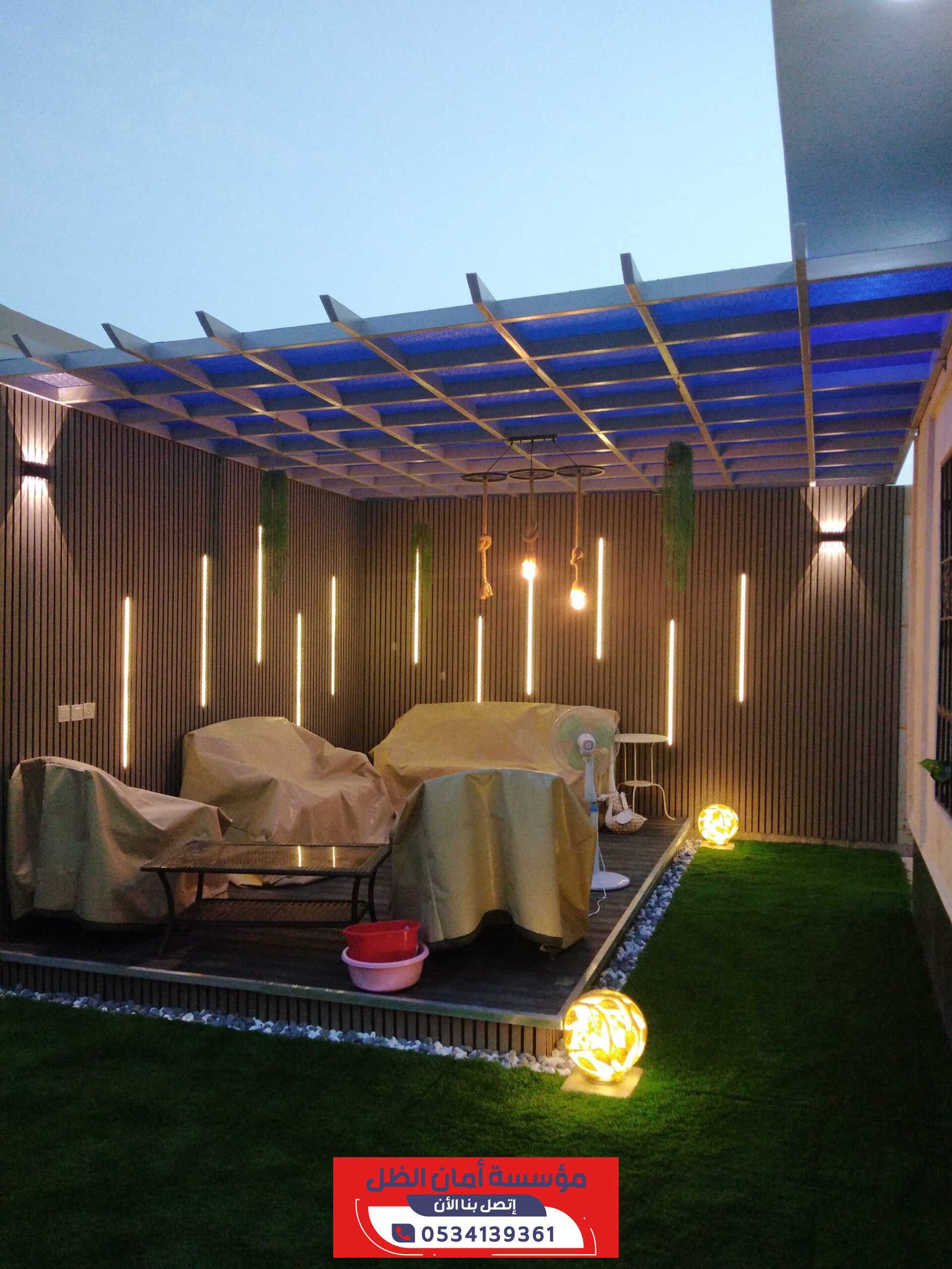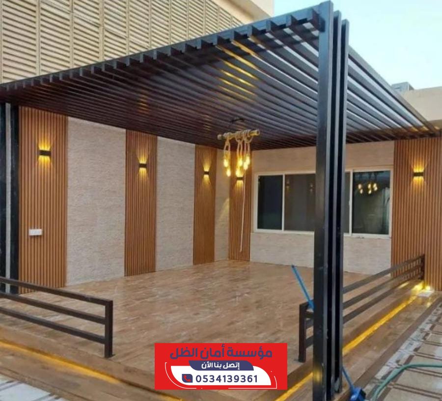 مؤسسة أمان الظل في شمال الرياض متخصصة في تصميم وتركيب البرجولات عالية الجودة بأساليب مبتكرة وخامات متينة توفر ظلاً مثالياً وجمالية فاخرة لمساحاتكم الخارجية مع ضمان تنفيذ احترافي وتصاميم مخصصة تلبي جميع احتياجاتكم.