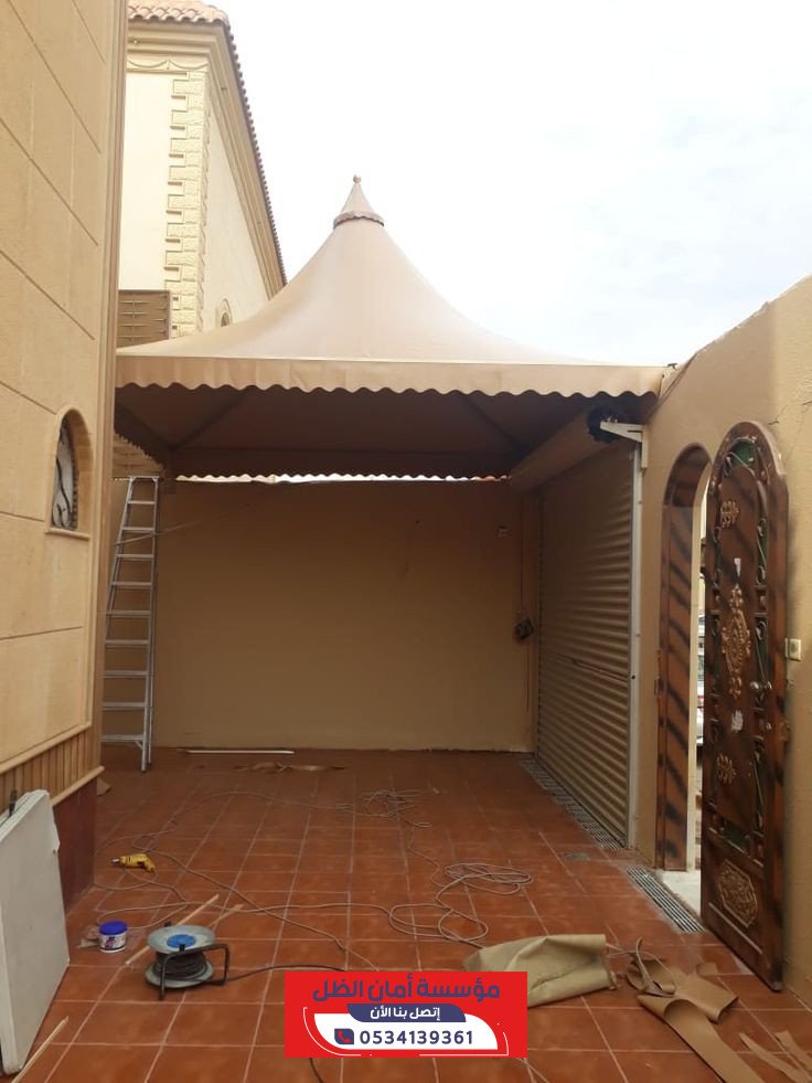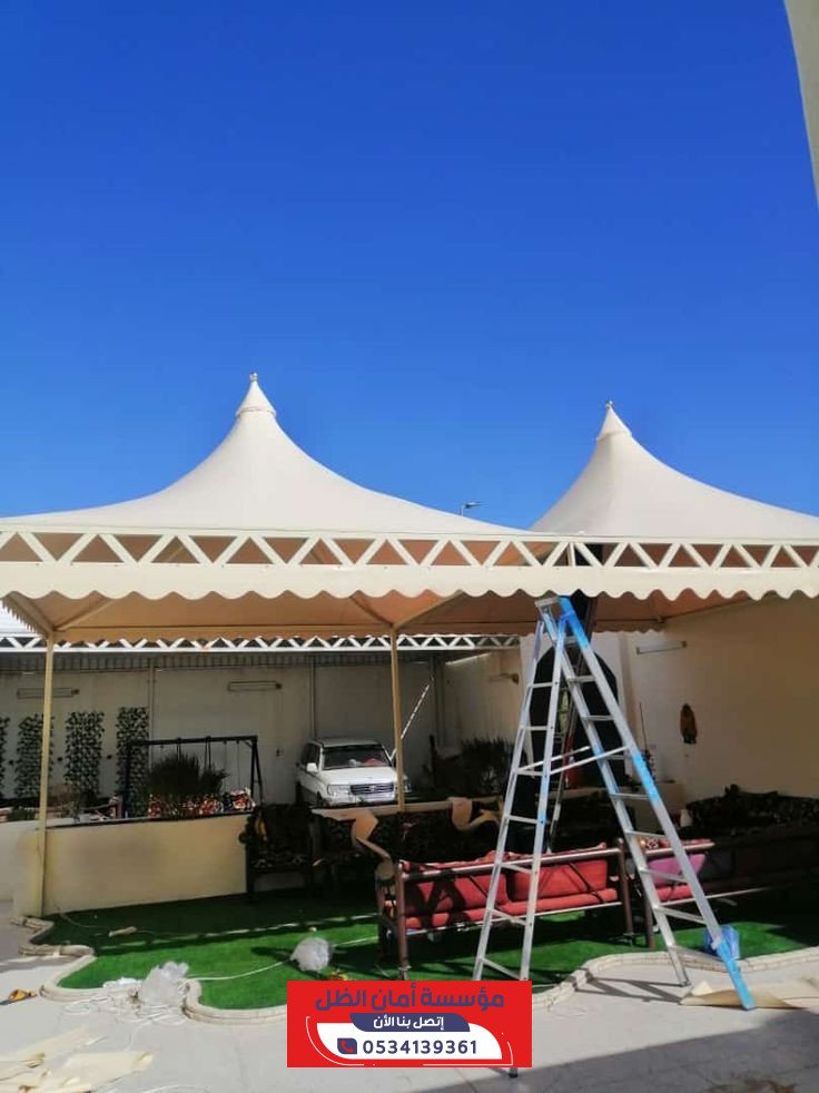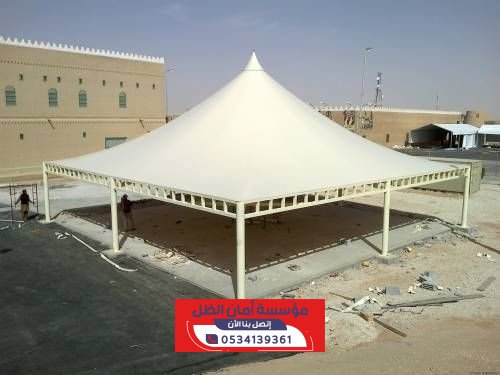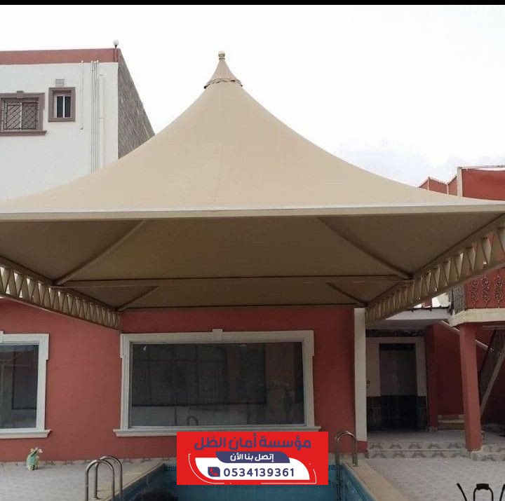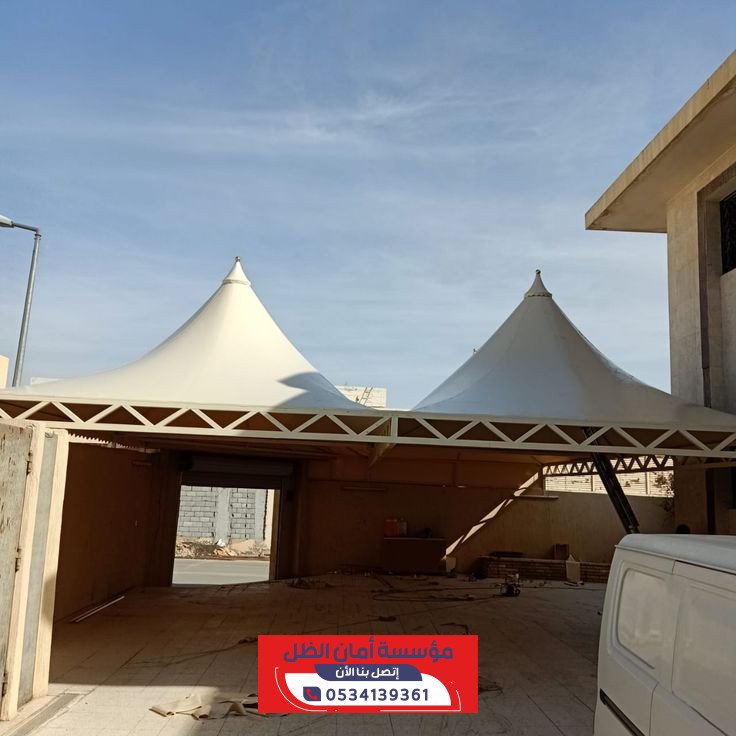 مظلات هرمية من مؤسسة أمان الظل توفر حماية فائقة للسيارات والمناطق الخارجية من أشعة الشمس والأمطار بتصاميم أنيقة وعصرية تبرز الجمال وتجمع بين المتانة والجودة العالية وتناسب جميع المساحات في شمال الرياض.